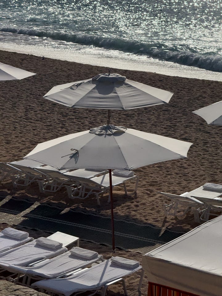 One day we had a poolside cabana that came with a cooler full of drinks and they brought small bites throughout the day. Ideal for a longer day in the sun since you have a comfortable shaded area (Lila took a nap on the couch at one point) and such a fun idea for a special occasion or group as you have your own dipping pool as well. On the beach they have raised cabana day beds that look like a R&R dream—on my list for our next visit!