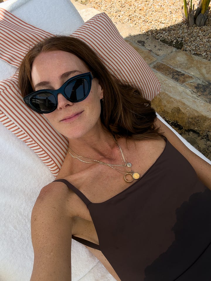 Brought my favorite Anemos swimsuit, love this as it looks so good as a bodysuit with shorts too, also always pack their triangle bikini (a favorite next to the Eres bikini I’ve had for years) and this balconette bikini.
