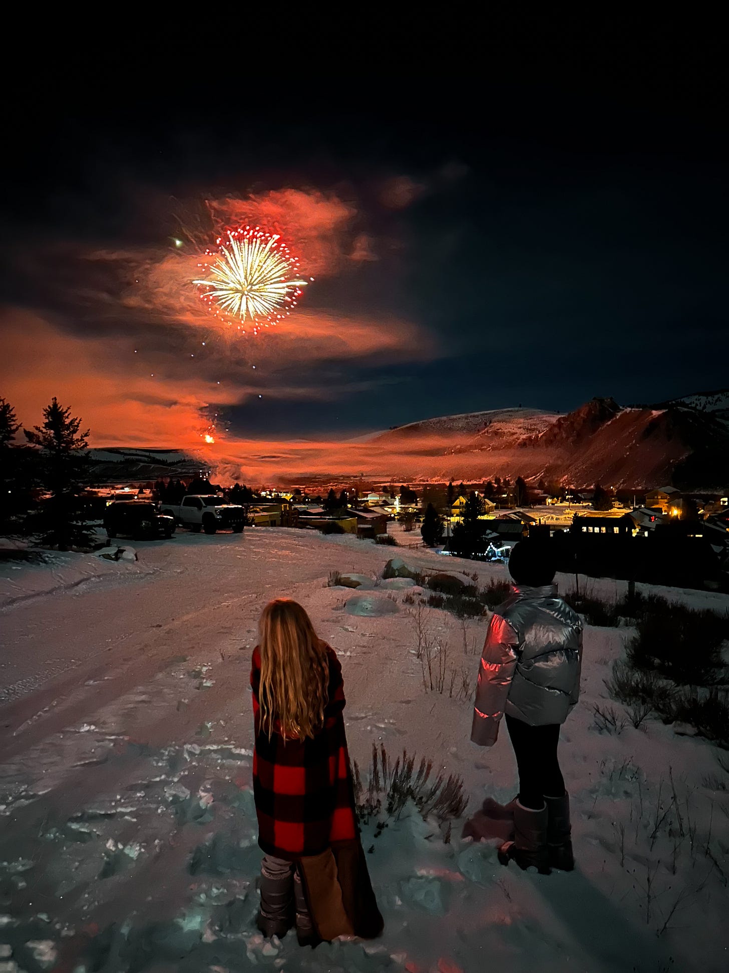 One of my absolutely favorite things we did this trip was spend NYE in Stanley, a tiny town just 40 minutes from Sun Valley where some friends have a cabin. They reserved the two hot springs at Mountain Village Resort so our group (kids and all) got to watch the last sunset of the year against the Sawtooth Mountains—something I’ll never forget. Afterwards we had dinner at a friends cabin up there and watched the fireworks.